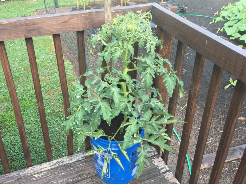 5 gallon bucket challenge pumpkin is growing well. I will give it a bit of pruning this week.