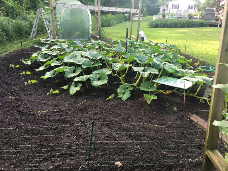 532 Young is quickly filling its 400 square foot space. We may grow 2 pumpkins off this plant so we can bring one to my fathers assisted living facility.