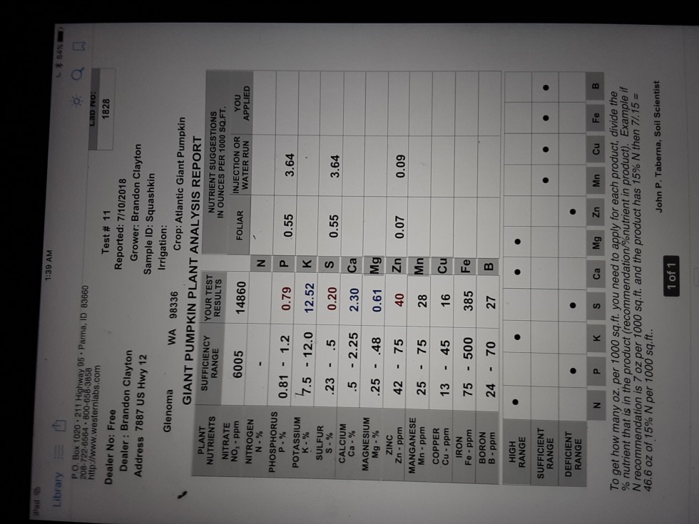 This is the plant that grew the 795.5 a couple years ago. Notice the nitrogen. No splits on the plant. I dont expect any on this years either. I did have one last year that kept splitting but I did not do a tissue test on it. Wish I had...