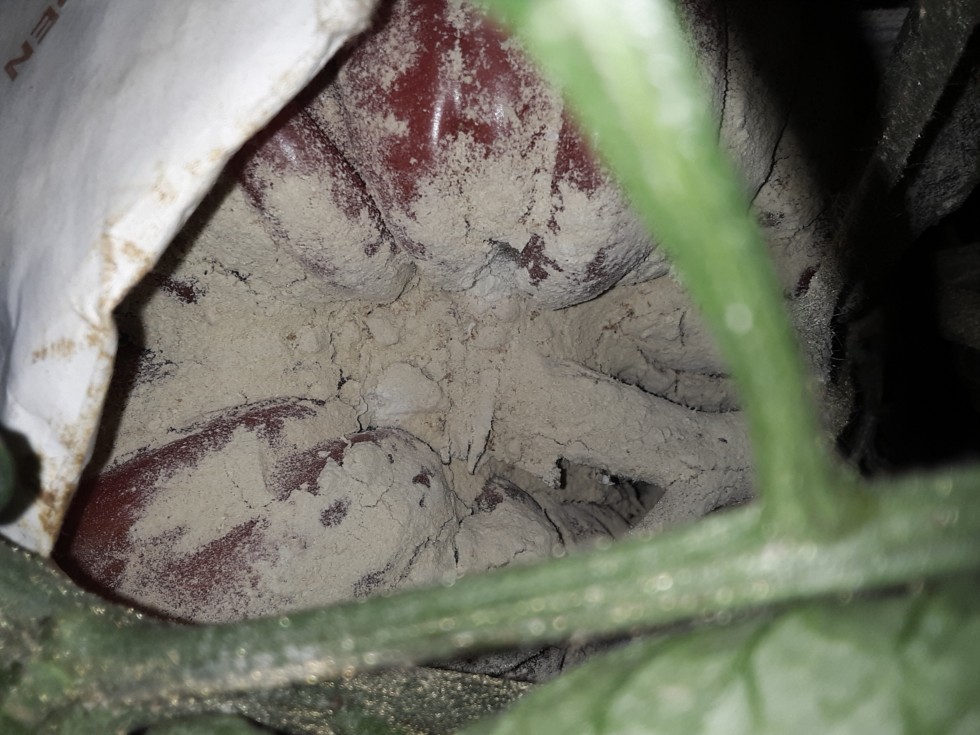 Some slight cracking of the sulfer in the past week. I am surprised that it does seem to have grown in the past week despite beginning to blush a week ago. I watered heavily and even got the whole plant wet in the evening... no longer care about roots or foliage... Its the 11th inning & plump is the name of the game! She can split! As long as she dont leak!!! 5.12 MacDonald is now the ... ?