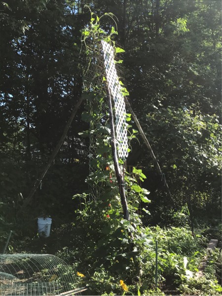 The garden is almost full, the long gourd has reached the top. It�s a great time of year and soon can rest a bit and watch things grow and enjoy all of our efforts.