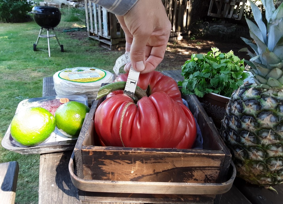 Stem cut to within 1". I coulda cut it shorter but hey... just following the rules :) Thats it for today. It's time for this tomato become a Hawaiian burger and fresh salsa. Bye-bye, ya lightweight, stinky-bottom, eye-candy tomato!!!