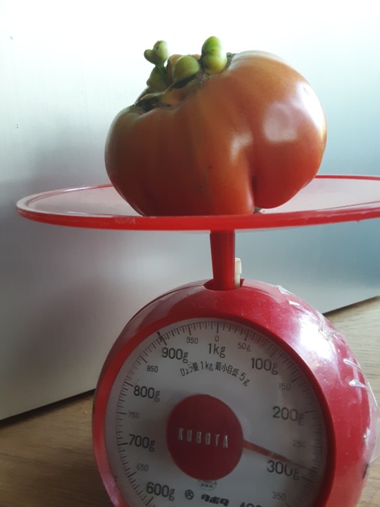 2nd ripe tomato of the year is shamefully small. 10 oz but you gotta love those dingleberries. So close to beating Mr. Sutherland. I guess I need more dingleberries.