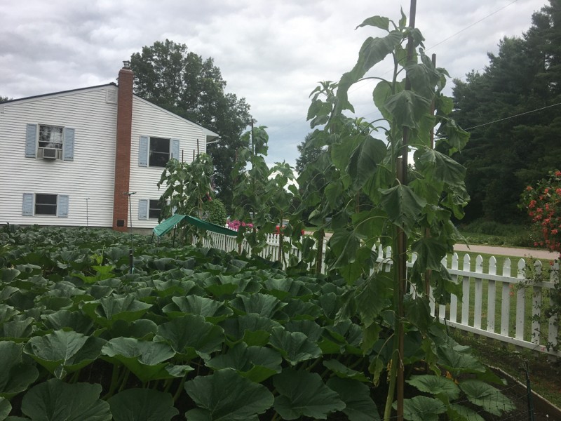 Sunflowers are doing well with the tallest around 13 feet.