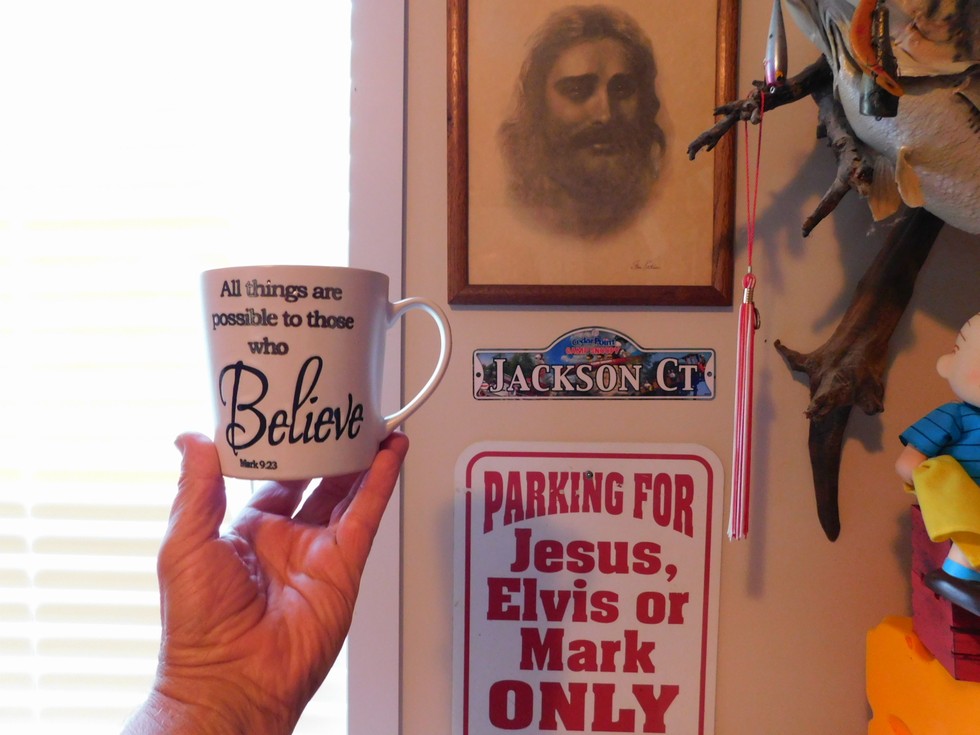 Went to a local charity sale to help Appalachians who live in poverty.They have this sale in Holly every summer thanks to Barb Roos & family.Loving me my new cup.Please donate to our own victims of economic & environmental changes.Lets feed our own neighbors before the rest of the planet.Donation charity putting my best foot forward to help the needy