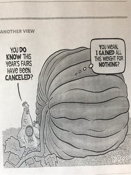 Our pumpkin is putting on the pounds but am wondering if she will be all dressed up and nowhere to go. What a crazy year !