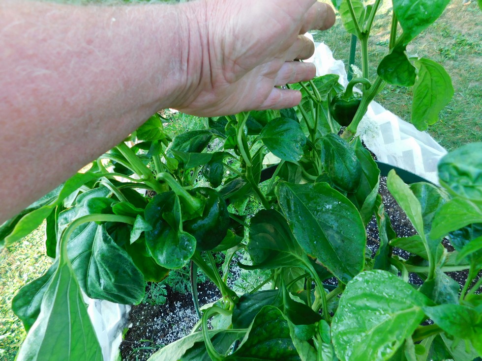 This is round 2 on the Colossal green peeper Johns 500 gram plus seed from 2015 If my memory is right? This is growing in the same 8 foot bed "The Worm" is in 301 Dairy Do compost.This is year #2 on the 301.It grew my sugar snap peas this past spring.Seems to be fruit producing mix for veggies.I just culled all the fruit I could still dozens more & will have to pick off with tweeezers.
