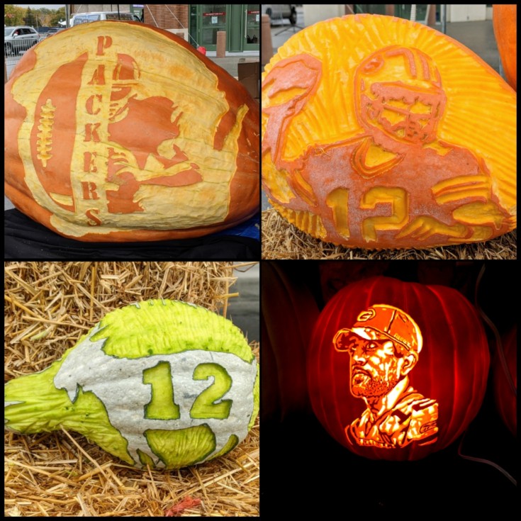 I carved Sue the Conqueror of the 2261 Schmit, and a few Aaron Rodgers pumpkins. It was a really good carve for us. With the exception of me hyperextending my left elbow putting the trailer gate back on. Good thing you only need one arm to carve.