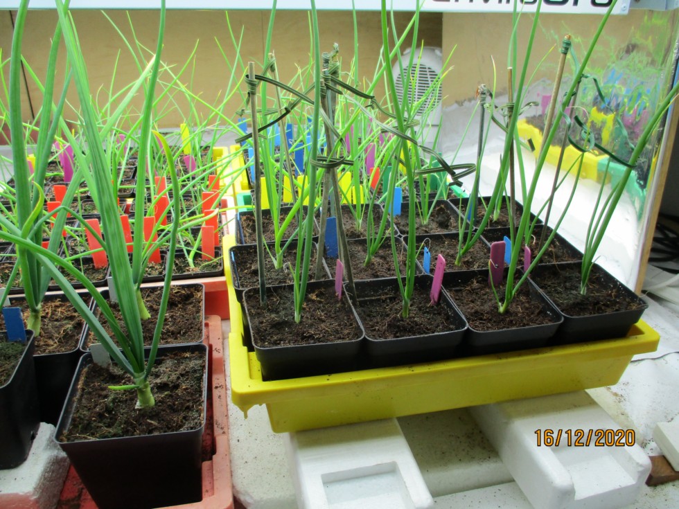 2nd sowing Onions, just moved 12 of the largest into 4 inch with their first supports.