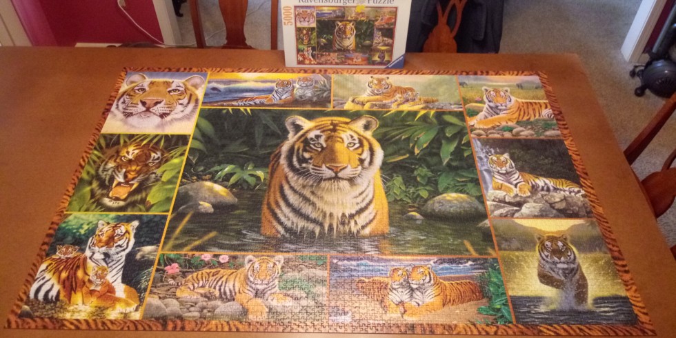 Well it's finnished a 5,000 pice puzzle done in 9 days !!! The dimensions are 42"x 60"