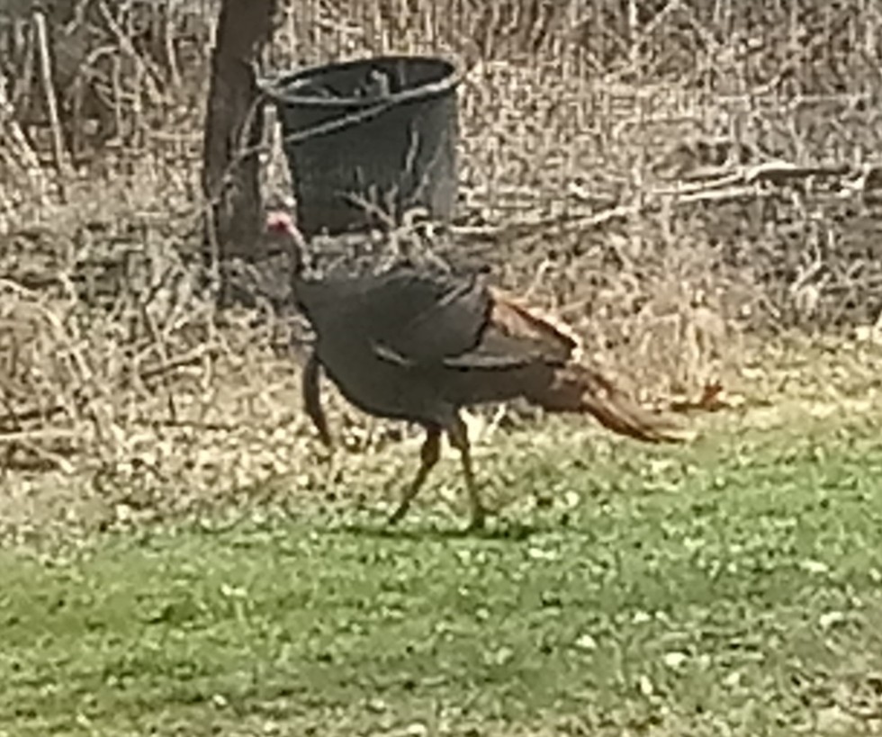 Went to my garden for the first time this year and saw 5 turkey took this picture from my car as they ran away.