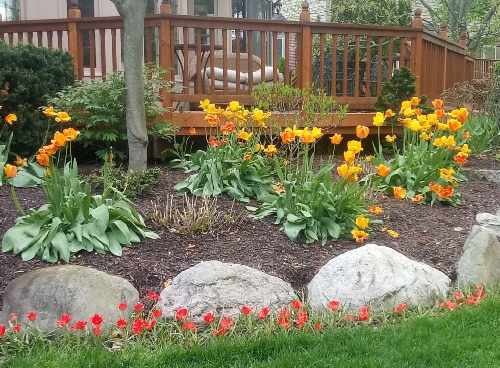 This is the last of the tulips this year. I thought the little red ones would have been the first to bloom but they ended up being the last to bloom.