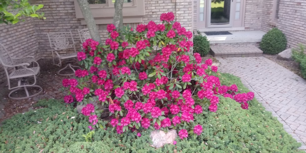 My rhododendron is in full bloom now. This is pretty big for michigan
