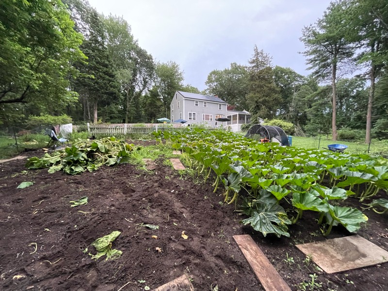 A sad day. Today I got home from recovering from surgery being away in Maine for a week. I�ve only been in my patch 2 times in nearly two weeks and came home to a soaked patch with disease! It�s disappointing and sad but I found several secondary�s with wilted leaves on the 1215 young with lots of rot. The weather is the culprit as it hasn�t stopped raining for weeks now with barely any sun. I believe phytophera could�ve been the disease as I recognized the wilting and thought back to 2017 and 2018 when I had phytophera. The pumpkin on the 1215 hadn�t grown at all so I�d figure it�s best to pull the plant and not risk it spreading to my 1184. My 1184.5 is my last hope! No wilted leaves so I�m keeping my fingers crossed. The pumpkin has some significant rot on the stem so I will try my best to dry it out but it�s not looking so good. You just can�t dry things out with no sun and rain. Another inch or two tonight! She has an estimated weight of 215 pounds at 31 days old. The worst numbers I�ve ever had but I will not give up!! If I can dry her out we have a chance at getting something to the scales! Certainly disappointed though. I had a fantastic start to the season but the weather prevented the great start from continuing. I had hope..