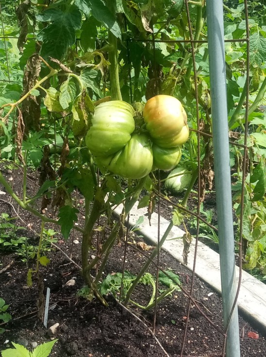 I started with 30 plants this year, after about 13" of rain since june 25 all my competition tomatoes were prety much wiped out. I have only 2 tomatoes from my 30 plants that i can find to even weigh. This one is flashing at 21" so im estimating about 3.5 lbs