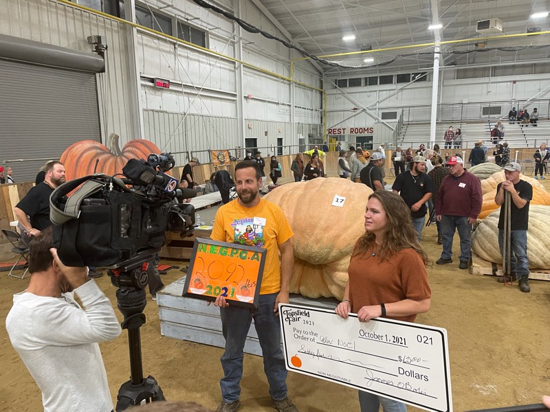 Alex Noel with the winning pumpkin at 2092 pounds!