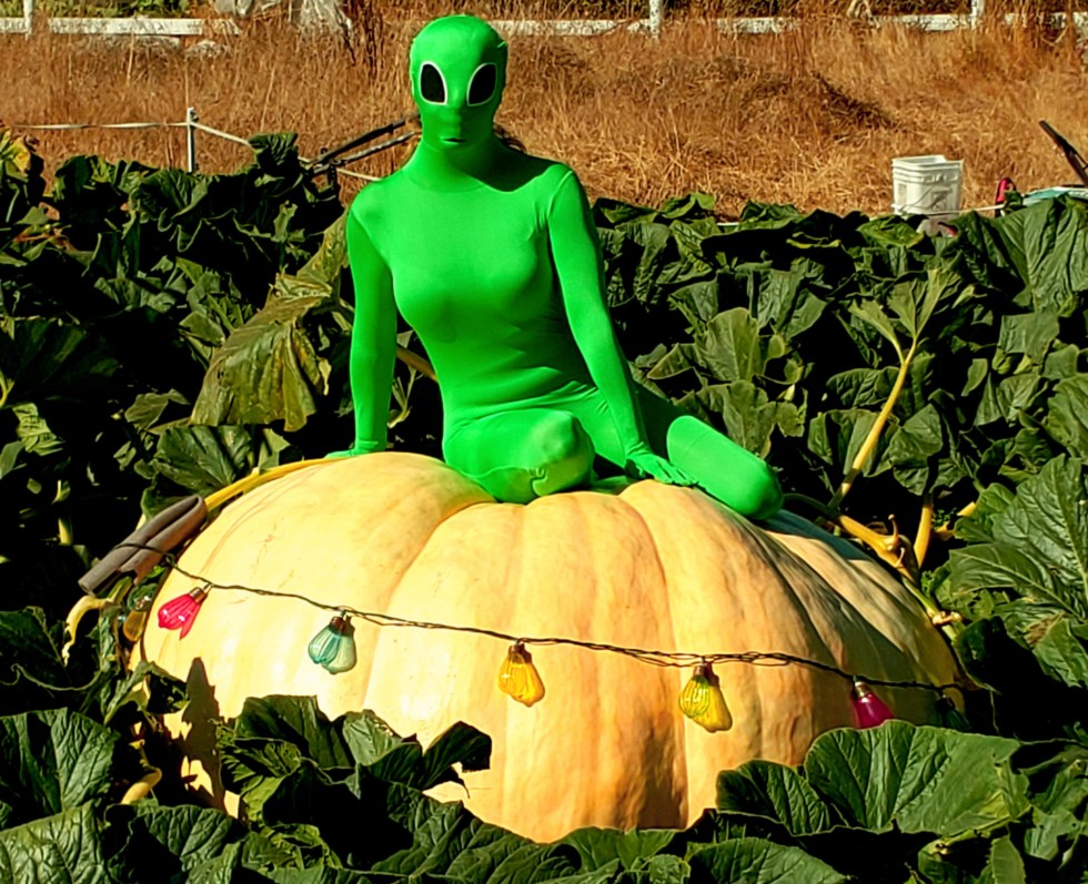 You're not going to believe this, but I witnessed an alien land her space ship IN MY PUMPKIN PATCH!