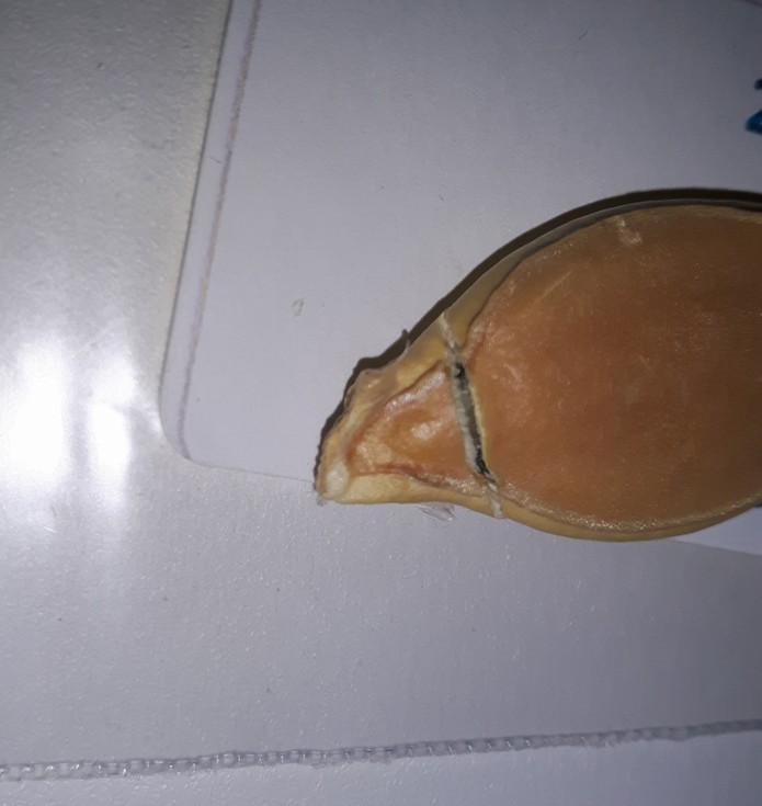 Here's a close up of the crack on the 2015 seed. Hard to say if the root tip is damaged or not.