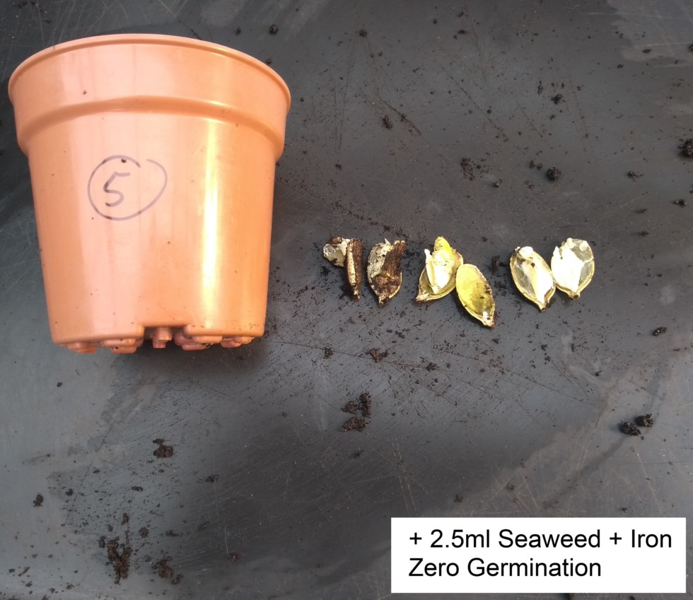 I had this solution in my shed, and whilst I've never used it as a seed soak, I certainly won't now :) 5. 2.5ml seaweed solution plus sequestered iron (Maxicrop)� 0% Germination