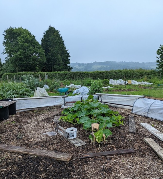 From the front of the plant. Secondaries are taking off and I'm going away for a few days so I moved the barriers back a bit. Weather has been cool, dismal and rainy but there is some sun ahead.