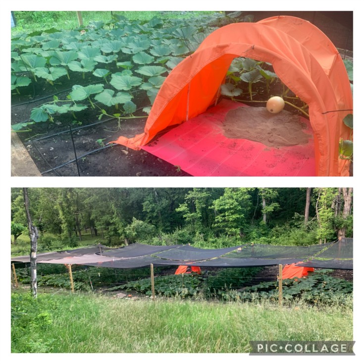 Put up pumpkin huts. 2365 Wolf (x 2376 Bayuk) starting to grow.