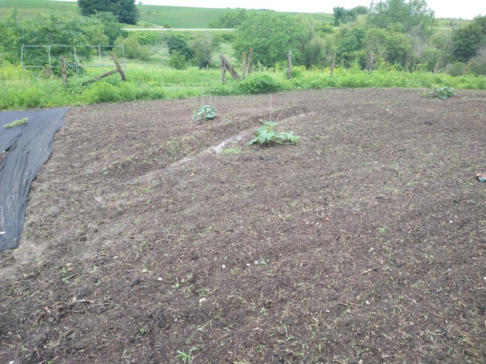 152.5 Tobeck Marrow and the 320.5 Connolly Bushel gourd. Ran out of space in the garden so planted my sweet potatoes between these two plants