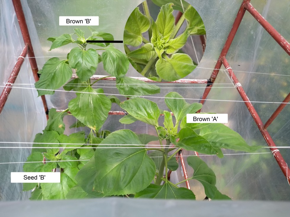 **Correcting image for diary entry 55** 26th June to 3rd July... - Brown 'A': 308cm (+46cm) - Brown 'B' 290cm (+44cm) - Seed 'B': 240cm (+40cm)
