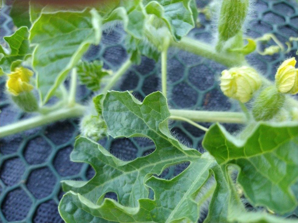 Several options on the biggest of the two 163 watermelon plants today. All pollinated with the 220.5 Smiley