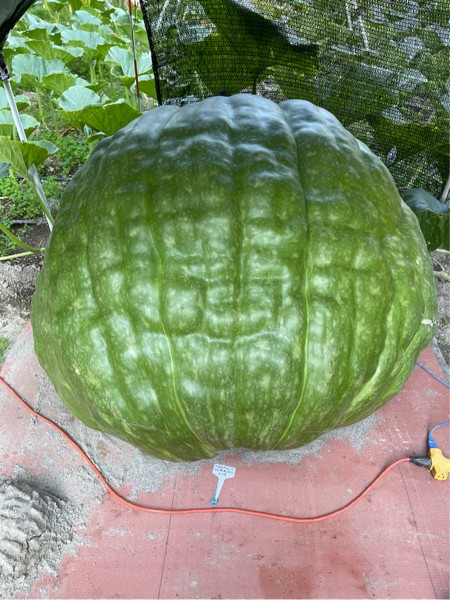No shining stars in the pumpkin patch this year but I do have this beautiful green squash taping 825 pounds on day 50.