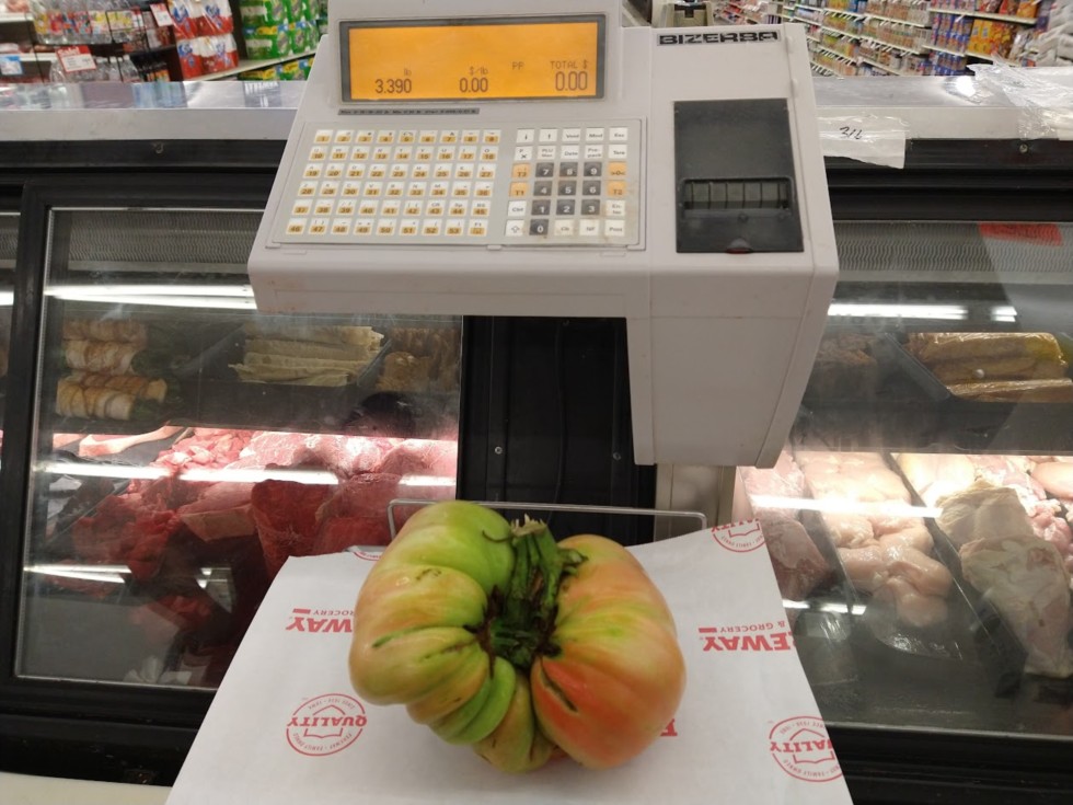 Finally made it to the store to officially weigh a couple of tomatoes that were harvested while we were gone. Dad got a little nervous and picked a couple days too early looks like, but it's better than the alternative. My tomato efforts are still pretty poor overall this year, but at least have a couple over 3 lbs now. First one is 3.39 lbs from the 6.23 Konieczny Domingo.