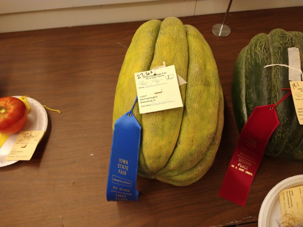 64.7 Terry x Open. Cantaloupes are struggling this year. Not sure I'll get one much bigger than this the way they look.