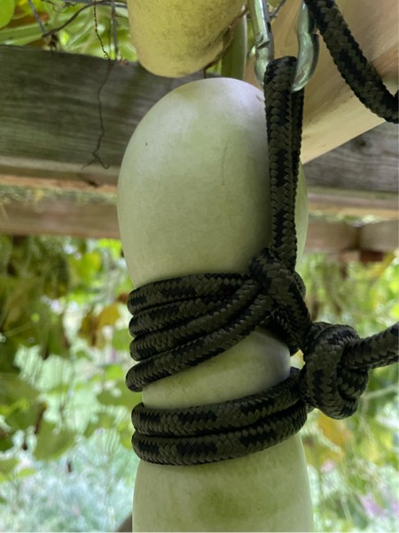 If anybody cares, this is how I tied up my long gourd this year. It�s a prussic knot.