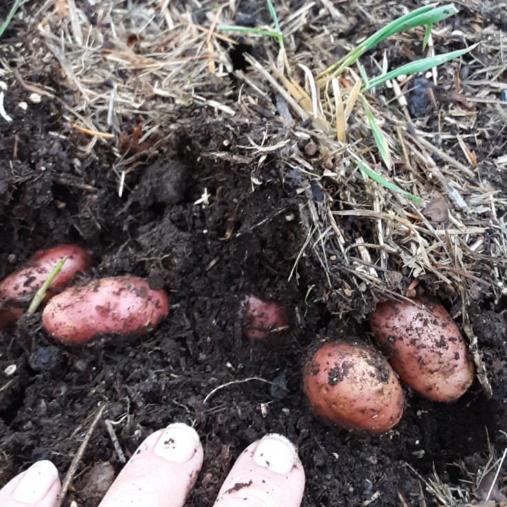 They make digging the grass out more fun... Every bit of grass has potatoes under it.