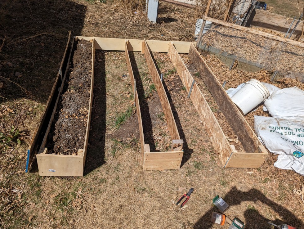 Last year's dirt into the new box... Ummm I need more soil...