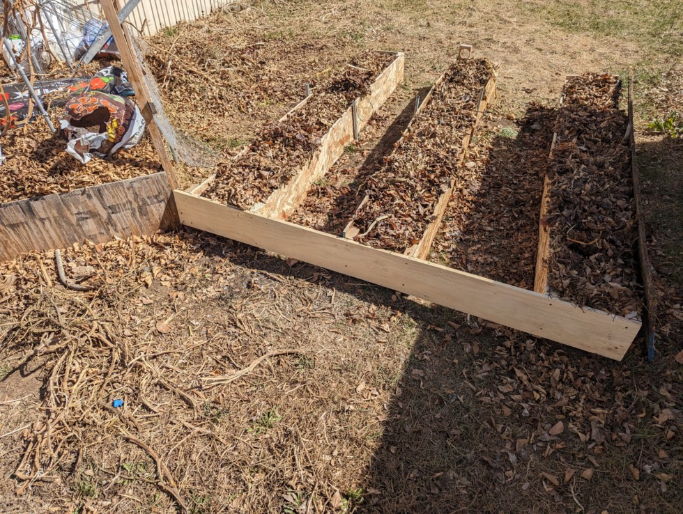 Some of last years leaves to protect it all and done. Just in time as the forecast is calling for snow later this week.