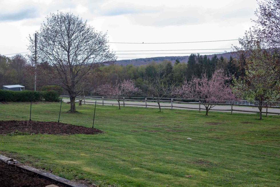 Orange patch, will not receive any extra attention. Was mulched to keep watering needs way down and keep weeds at bay. Peach and pear trees in the background, if the freeze don't kill em looks like a great year again for both.