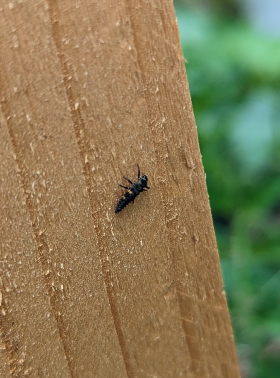 I like seeing this!! In case you don't know this is ladybug larvae. Don't kill these little bugs, they eat the bad garden pests.