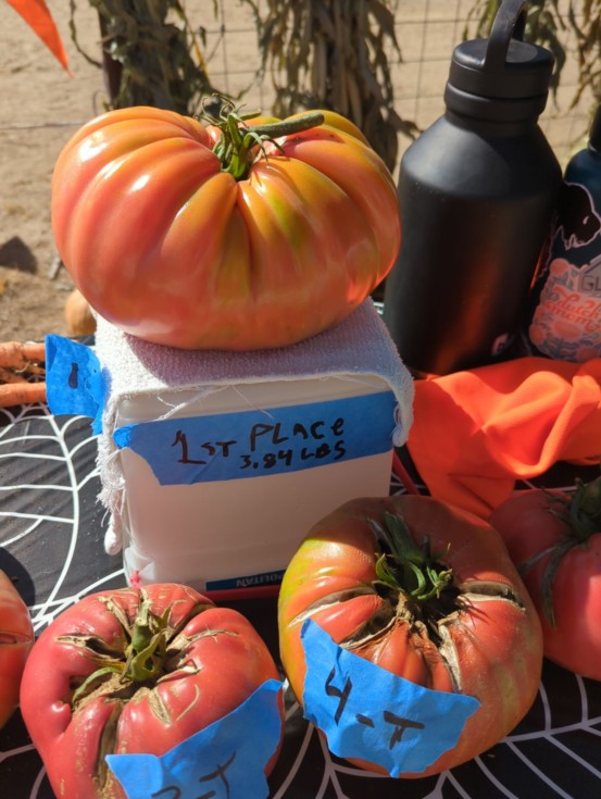 I gave a buddy Roger one of my extra 3.90 starts and he got first place 3.84 Schlack. He somewhat ignored the plant and grew several 2 and 3 lbs maters and this monster on this one plant!?! Maybe I'm trying too hard. Sigh