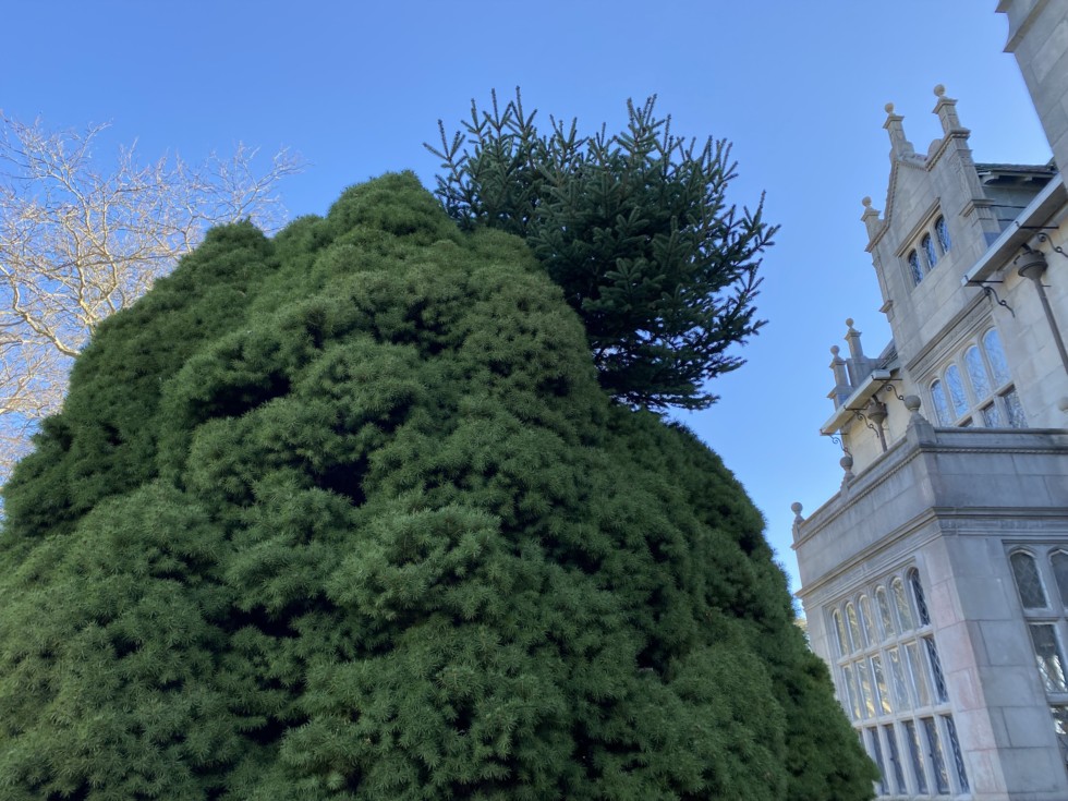 When I used to work at a retail nursery people would come in and tell me �a tree grew out of my bush�. After asking a few questions I usually could figure out what they meant by that. In the picture you see the back side of one of the dwarf Alberta spruce. It has a regular looking spruce growing out of the tree this is called a reversion. The dwarf Alberta spruce cultivar is nothing more than a mutation. The reversion is the tree reverting back to its true self. If a gardener doesn't cut out that reversion soon it will grow like gang busters and eventually the whole tree will need to be removed. If it is removed soon the tree will be fine and not have much of a dead spot.