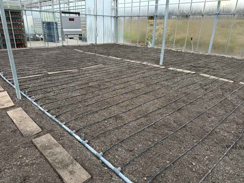 Drip tubes are going in which are spaced about 12 inches apart.