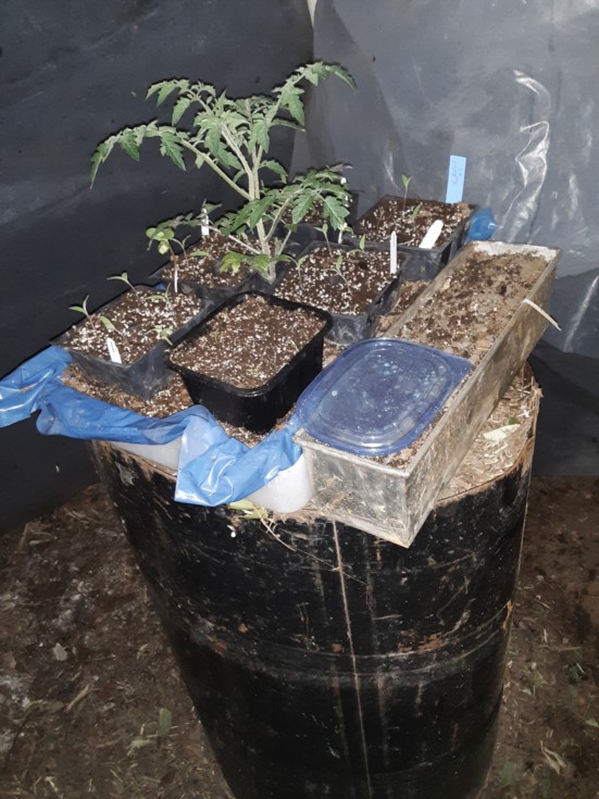 I mowed a barrel of clippings from my yard. I put the barrel in the grow hut. I put the seedlings atop the barrel. Is this "compost-heater" working to keep them warm...?