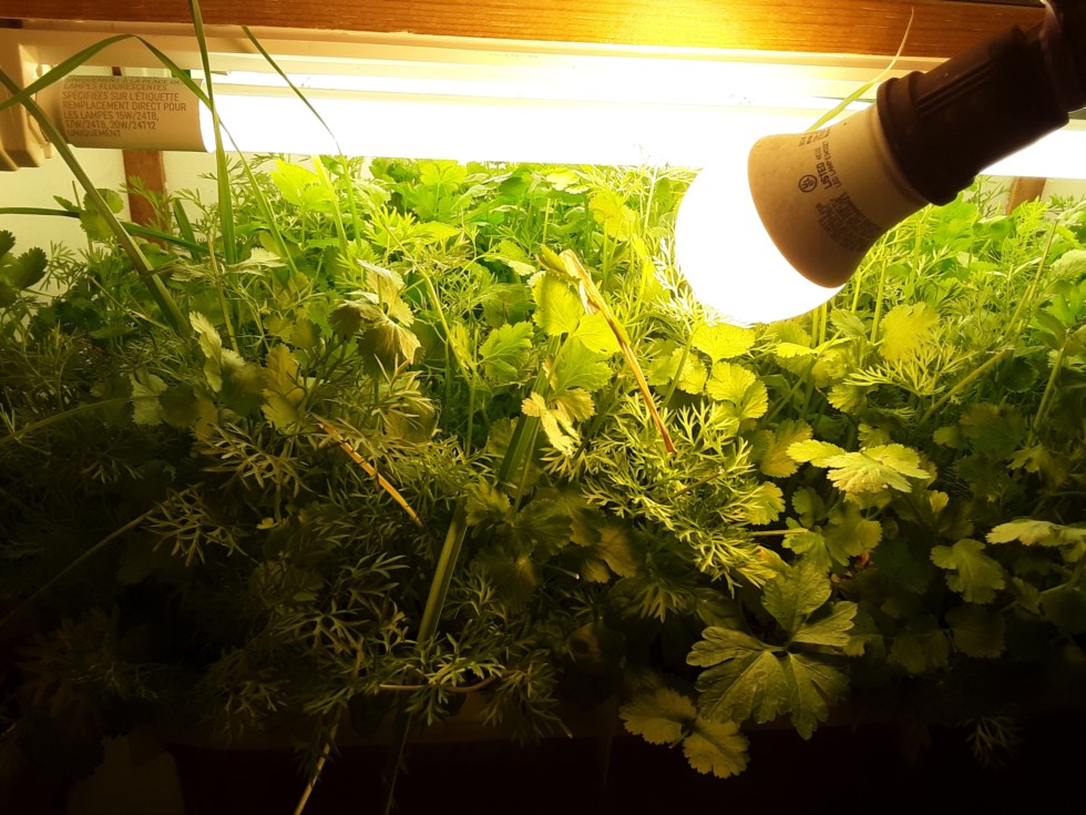The indoor greens went nuts when I put them outdoors in real sun for a few days. Even after clipping them down, they still barely fit under the grow lights.