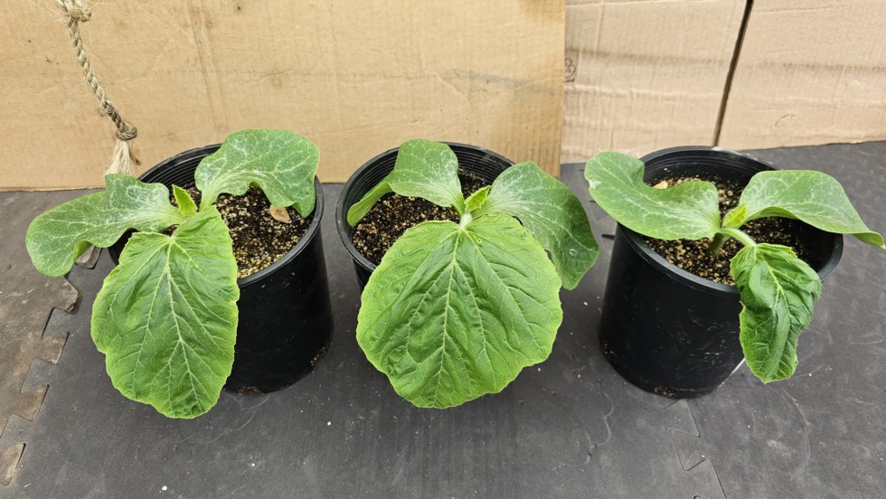 We start many seeds (if we're lucky enough to have them) to see if there's a better one or a poor one. The center plant has always looked best and it's proving itself now. Everything is good to go in the greenhouse so I will betransplanting the middle one tomorrow.