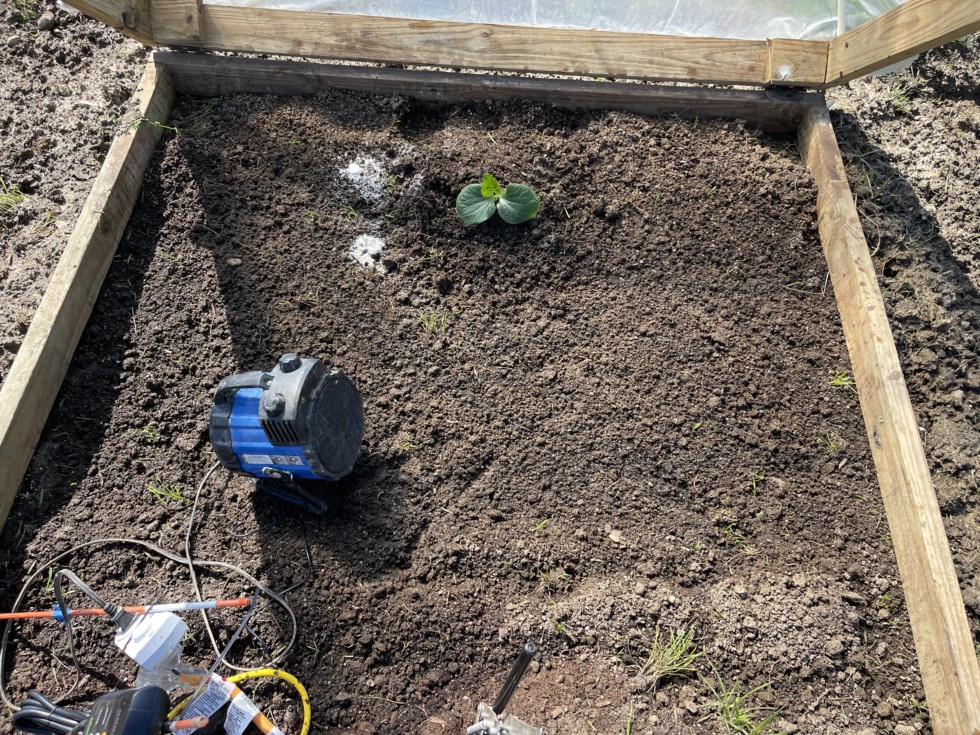 1783 New planted in outside patch on 4/13/24. 2 Seeds were sanded and soaked 6 hours in Wow5/2 at 88 degrees on 4/4. Seeds Broke ground/seed coat off in 68 hours. Planted one outside in auto-opening hoop huts with 60' gutter cables and 750 watt heater with thermostat on 4/13. The other 1783 New was transferred to a 5 gallon pot and placed in Mars Hydro grow tent in case something would go wrong with the main plant.