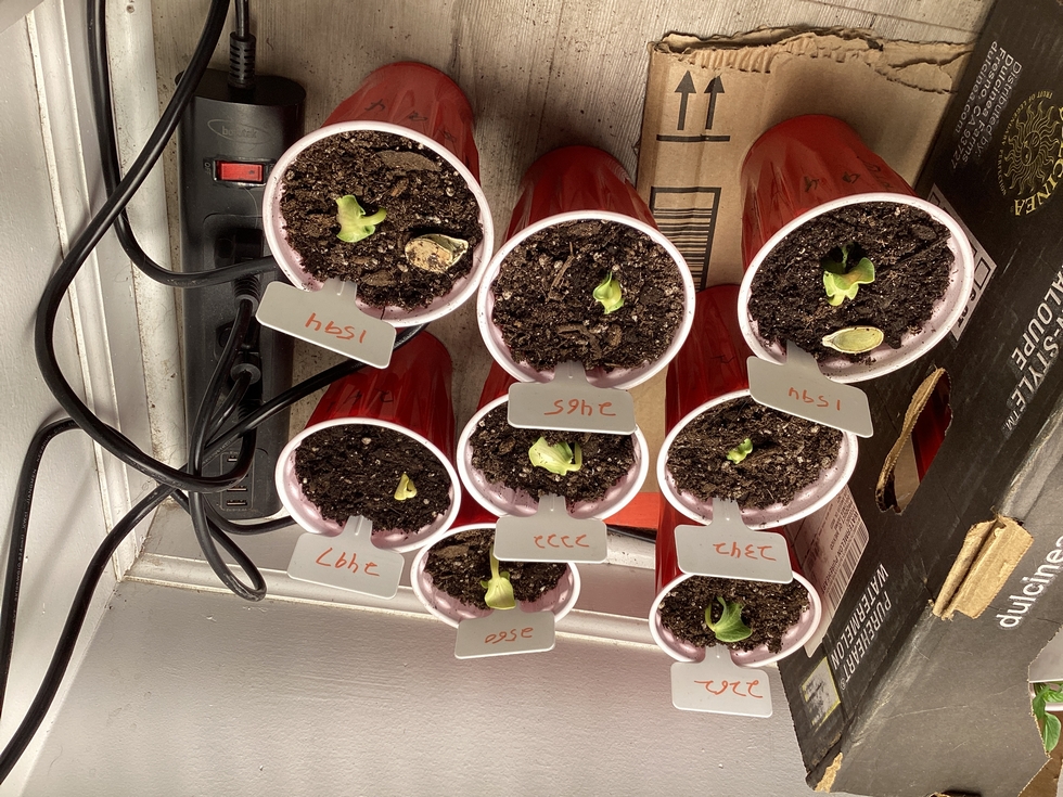 I decided to only soak my seeds for 1 hour and did not file the light colored seeds. 100 % germination but the 2262 stelts only came up with one leaf.