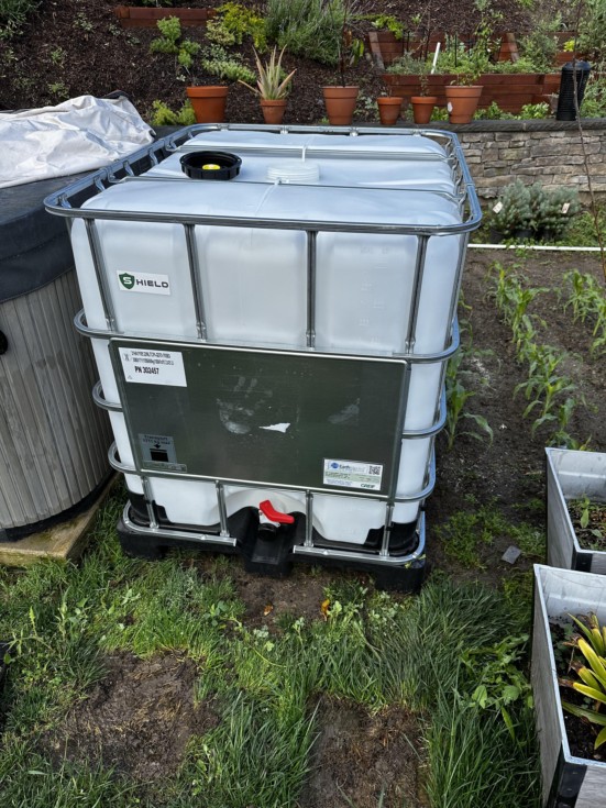 Picked up a used IBC tote locally. Time to clean it and get the irrigation system in place.