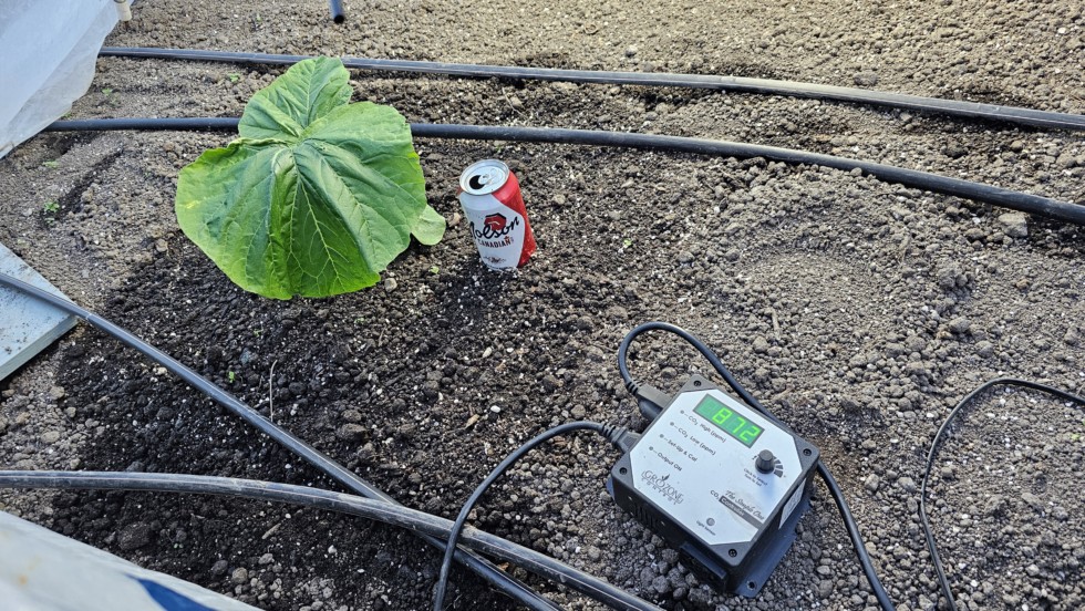 This "black box" monitors the CO2 and regulates it between a high of 900 ppm and a low of 700 ppm. The only thing I can't automate is shutting it off when the sun goes down. I need to go in the greenhouse and turn it off manually.