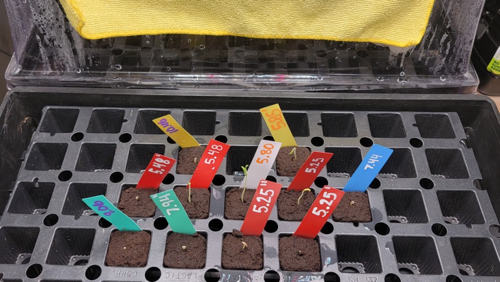 It's been 4 days since I started my competition mater seeds. 11 of 24 have germ'ed. Not thrilled with that percentage, so there's def' room for improvement. Hoping a few more pop in the next few days so i can fill all 14 available prime spots. Those 11 shown have earned spots under the prized synthetic light, the laggards have been relegated to remedial training with more warmth in the darkness.