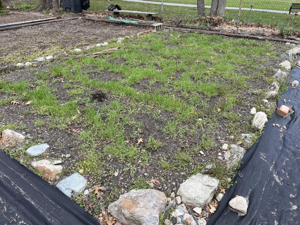 Corner shot of my girlfriend's vegetable garden. While the Winter Rye is a bit spotty in each of our gardens, it still did a very good job of blocking out weeds.