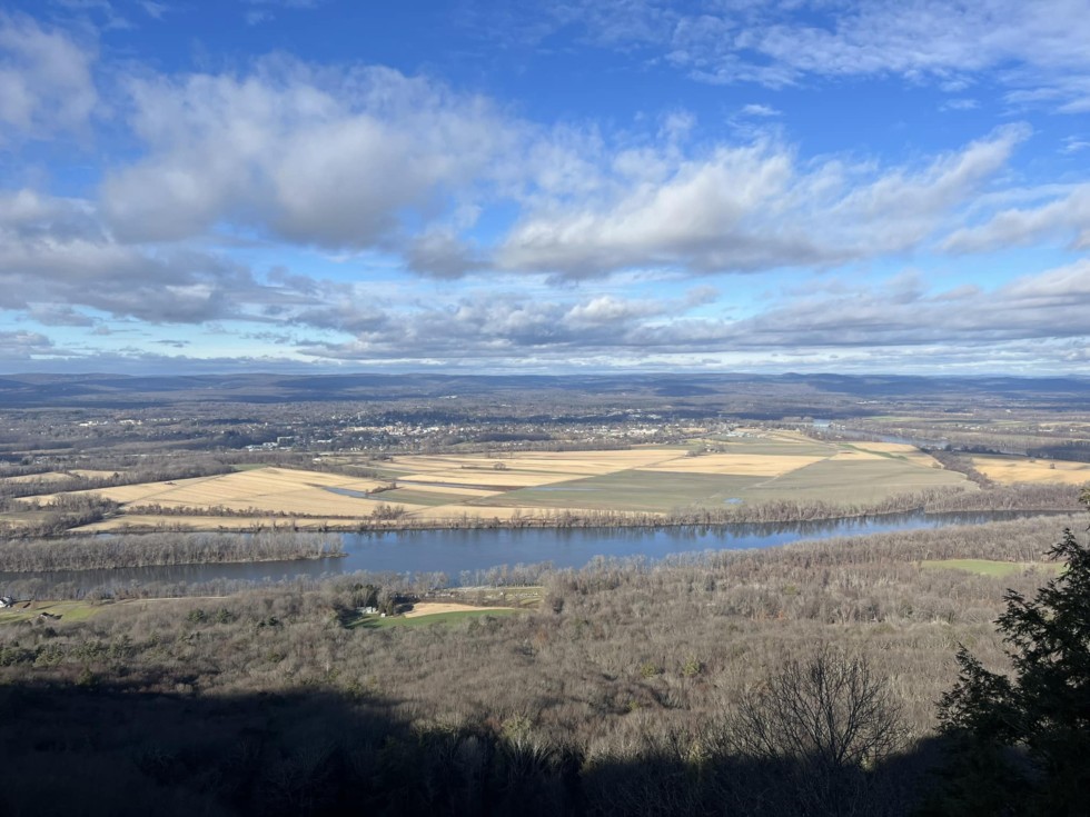 Made it to the summit this morning of Mt. Holyoke. Views of the Connecticut River, Berkshires, NH, VT, CT. A Bald Eagle was circling the summit. Our first time up here.